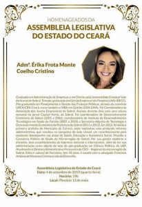 Os Administradores Érika Frota Monte Coelho Cristino; Geraldo Luciano Mattos Júnior; Gilber Cristian Barbosa Costa; Josbertini Virgínio Clementino; Paulo Venício Moreira de Pinho e o Tecnólogo José Ricardo Montenegro Cavalcante serão os homenageados.