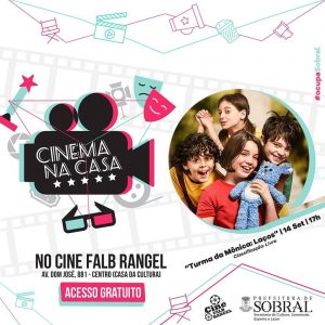 O Cinema na Casa exibe, neste sábado (14/09), a partir das 17 horas, na Sala de Cinema Falb Rangel (Casa da Cultura) o filme “Turma da Mônica: Laços”. O acesso é gratuito e a classificação indicativa livre.