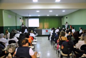 Dentro da programação do IQG, gestores e profissionais da saúde participaram da palestra de sensibilização no auditório do Hospital do Coração. O momento foi ministrado pela biomédica e avaliadora, Helen Moreira, que destacou a importância do processo de mudança cultural e comportamental para uma gestão de saúde com foco na qualidade. Ela também apresentou o modelo atual do hospital e as mudanças que a organização deseja realizar para preservar, sobretudo, a segurança e harmonia dos funcionários e pacientes.