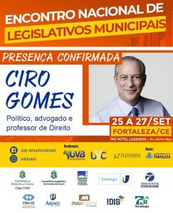 Ciro Gomes vai falar para vereadores de todo Brasil em encontro nacional de legisladores em Fortaleza