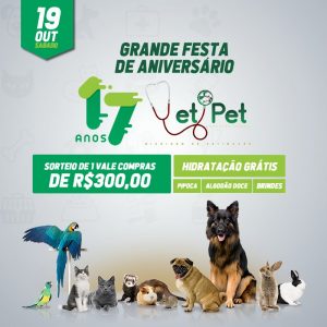 A Clínica Vet Pet (Bichinho de Estimação) está comemorando aniversário de 17 anos no próximo dia 19 de Outubro, e irá promover um dia especialmente dedicado para seus clientes e seus pets