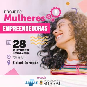 A Prefeitura de Sobral, por meio da Vice-Prefeitura e da Secretaria do Trabalho e Desenvolvimento Econômico (STDE), e o Sebrae realizam nesta segunda-feira (28), o encontro do projeto Mulheres Empreendedoras, a partir das 15 horas, no Centro de Convenções. O evento é voltado ao público feminino e integra a programação do Outubro Rosa.