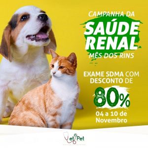 NOVEMBRO E O CUIDADO COM A SAÚDE RENAL DO SEU PET! De 4 a 10 de Novembro o Exame SDMA está com 80% de desconto na Clinica Vet Pet para você cuidar da saúde do seu pet!