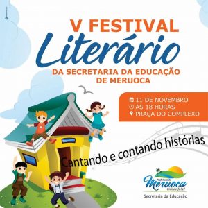 A Prefeitura de Meruoca, através da secretaria de Educação, promove nesta segunda-feira (11), na Praça do Centro de Feiras e Eventos, o V Festival Literário das Escolas Municipais de Meruoca. O evento começar as 18h.