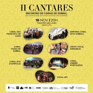 Neste sábado (16), o Theatro São João recebe o II Cantares – Encontro de Corais de Sobral, a partir das 20 horas. Neste ano, a segunda edição é formada por sete grupos que apresentarão seus repertórios como forma de divulgar a atividade de canto coral e motivar as pessoas a participarem de grupos musicais.