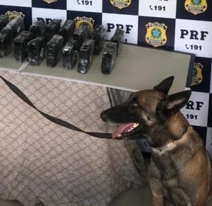 A cadela Lua encontrou a droga no interior das caixas de ar do carro onde estava o suspeito. Foram apreendidos 20 tabletes.