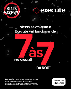 Mais uma vez a Execute irá participar de uma data tão aguardada por vários consumidores ao redor do mundo, a Black Friday. Com descontos incríveis essa sexta-feira trará a melhor oportunidade do ano pra fechar aquele negócio com melhor preço.