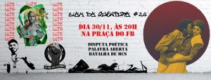 Nosso encontro já está marcado neste último sábado do mês (30/11). Poesias potentes ecoantes na Praça do Abrigo! Convida os parça que vai ter poesia nua e crua! Traz tua rima, tuas angústias, rasga o peito, ri, chora, fresca, brinca, vem pra cá que é há afeto que te afeta! Vem escutar, falar, gritar, amar! Chega junto que é sal!