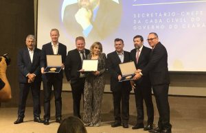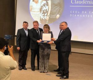 Na última quinta-feira (28), na sede da Federação das Industrias do Estado do Ceará, em Fortaleza, o Sindconfecções e o Sindroupas fizeram a entrega da Comenda Beni Veras, premiação dedicada a homenagear personalidades e organizações que se destacaram em 2019. Uma das homenagens foi para a empresa Diamantes Langerie, de Frecheirinha, liderada pelos irmãos sobralenses Claudência e Claudio Júnior. Os outros homenageados foram: o empresário Flavio Gurgel Rocha, CEO do grupo Riachuelo, e Élcio Batista, secretário da Casa Civil do Governo do Estado.