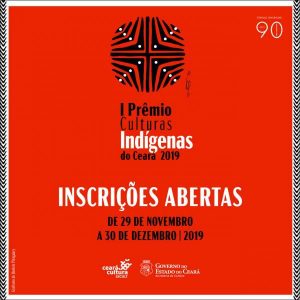 A Secretaria da Cultura do Estado do Ceará (Secult) abriu nesta sexta-feira (29), as inscrições para o I Prêmio Culturas Indígenas do Ceará. Para a premiação, a Secult disponibiliza um total de R$ 500.000,00, recursos do Tesouro Estadual. As inscrições seguem abertas até o dia 30/12 deste ano. A premiação que acontece, preferencialmente, de forma bienal, possibilita cumprir as diretrizes formuladas pelo Plano Estadual de Cultura do Ceará, instituído pela Lei nº 16.026/2016, de 01 de junho de 2016, como garantia dos direitos de acesso e promoção às políticas da cultura.