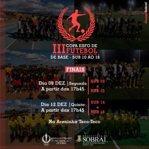 Nesta segunda-feira (09/12), acontecerá a final das categorias sub-10 e sub-12 da III Copa ESFO de Futebol. O momento inicia a partir das 17h45.