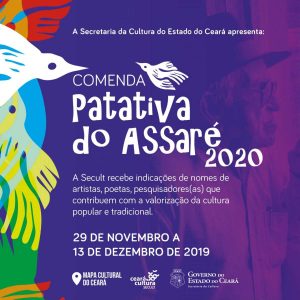 Quem você indicaria para receber a Comenda Patativa do Assaré e celebrar a cultura popular tradicional? A Secretaria da Cultura do Estado do Ceará (Secult) está recebendo até o próximo dia 13 de dezembro indicações para a Comenda Patativa do Assaré 2020