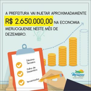 Prefeito Fonteles, de Meruoca, autorizou a secretaria de Finanças do Município a depositar nessa semana o 13° salário, o pagamento do mês de dezembro aos servidores, efetivos e comissionados, e o pagamento dos terceirizados. Essa medida injeta cerca de R$ 2,6 milhões na economia local, e aquece as vendas no comércio, mostra ainda que as contas públicas estão equilibradas em meio a esse mar de desesperança que se vê entre gestores dos pequenos municípios brasileiros.