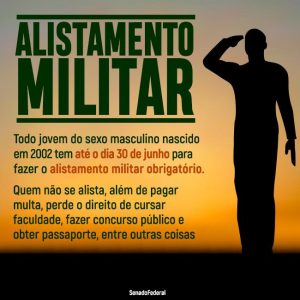 O alistamento é obrigatório e deve ser feito no ano em que o jovem (sexo masculino) completa 18 anos.