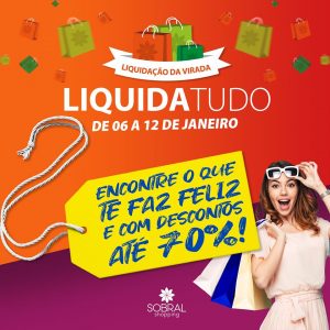 O Sobral Shopping preparou 7 dias de liquidação para você! Preparados para a primeira liquidação do ano? Então venham aproveitar o #LiquidaTudo do dia 06 ao dia 12 de janeiro. Esperamos por você!