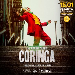 Nesta quarta-feira (15), às 18 horas, a Sala de Cinema Falb Rangel (Casa da Cultura) exibe o longa premiado “Coringa”. O filme é uma produção norte-americana que narra, de um forma bem próxima da realidade, a ascensão do maior vilão de Batman. É importante lembrar que cada sessão tem lotação de 70 cadeiras, então chegar com antecedência é importante para garantir uma vaga.
