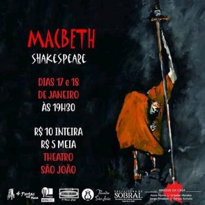 O ator reestreia com a Peça “De onde tiraram esse estranho descortínio e essas proféticas saudações?” uma adaptação da Clássica Tragédia Macbeth do dramaturgo inglês William Shakespeare, que apresenta uma história que inclui traição, mortes, poder e muita ambição. Ficará em cartaz nos dias 17 e 18 de janeiro, no Teatro São João, em Sobral.