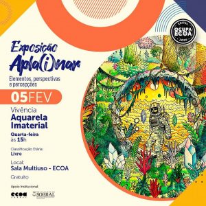 Próxima quarta-feira (5) tem lançamento de exposição na Ecoa! O artista Ivanhoé Lewandowski abre às 15h, na sala Multiuso, a exposição “Apa(i)nar – Elementos, perspectivas e percepções”, seguida da vivência “Aquarela Imaterial”, que consiste numa roda de conversa e prática em conjunto de aquarela e nankin.