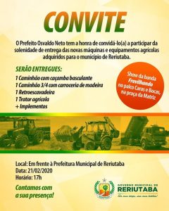 Prefeitura de Reriutaba entrega HOJE mais de R$ 900 mil em equipamentos