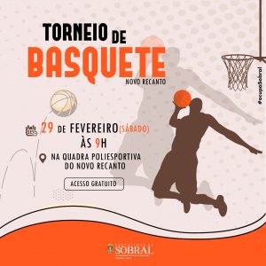A Prefeitura de Sobral, por meio da Secretaria da Cultura, Juventude, Esporte e Lazer (Sejel), realiza, neste sábado (29/02), o Torneio de Basquete do Novo Recanto. A competição acontecerá na quadra poliesportiva do bairro, a partir das 9 horas.