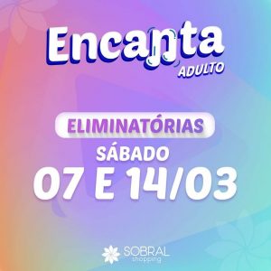 Todos animados para a primeira apresentação do Encanta Adultos? As inscrições foram um sucesso e os shows serão divididos em duas datas. 🎤🤩 Então, anota aí e chama os amigos para curtir e torcer no dias 07 e 14, às 17h, na Praça de Alimentação do Sobral Shoppping. 😃