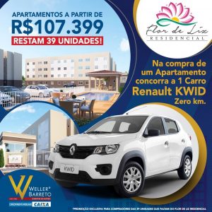 O Residencial Flor de Liz está com apenas 39 unidades disponíveis. Ainda dá tempo de garantir o seu futuro apartamento bem ao lado da fábrica 7 da Grendene e em frente a estação do VLT. Comprando um apto no Flor de Liz você ainda concorre a um carro Renault KWID Zero KM. Aproveite!