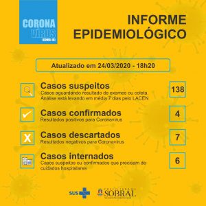 Boletim epidemiológico da Secretaria da Saúde de Sobral desta terça-feira (24/03), atualizado às 18h20.