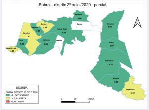 “Atenção Sobral!!!! O índice de infestação do mosquito da dengue está crescendo!! Mais do que nunca a participação da população de Sobral é necessária! Além do coronavírus é vital a proteção contra a dengue. Pelo amor à sua vida, dos seus entes queridos e à nossa cidade, ajude!!!!!! Acima estão os bairros e distritos onde o índice de infestação aumentou MUITO!!!! Procure focos em caixas d’água, garrafas, pneus, jarros ou qualquer outro lugar onde haja água limpa e parada. POR FAVOR COMPARTILHE O MÁXIMO POSSÍVEL!!!”