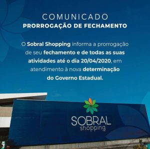 Sobral Shopping prorroga fechamento até 20 de abril
