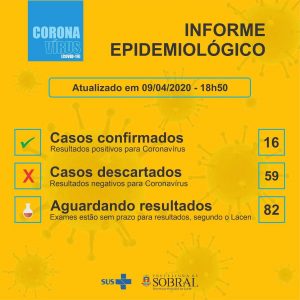 Boletim epidemiológico da Secretaria da Saúde de Sobral desta quinta-feira (09/04), atualizado às 18h50.