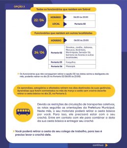 A opção 2 para quem reside em Sobral é dia 22 e para colaboradores de outras localidades, dia 24.