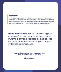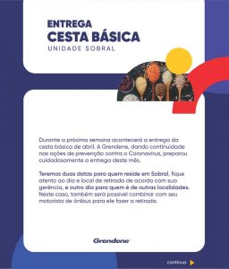 Atenção colaboradores da Grendene. A retirada da opção 1 para quem reside em Sobral é nos dias 22 e 23 de abril, de acordo com as divisões por gerência. No dia 24 a retirada é para colaboradores de outras localidades.