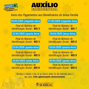 Não corra para as filas dos bancos desnecessariamente! Fique atento ao calendário de pagamentos do auxílio emergencial. Lembrando que o novo horário de atendimento nas agência bancárias, da abertura até as 11h, será exclusivo para idosos e pessoas do grupo de risco.