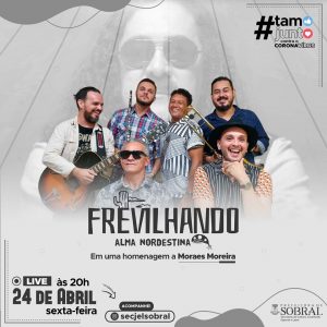 Nesta sexta-feira (24), às 20 horas, no Instagram da Secretaria da Cultura, Juventude, Esporte e Lazer de Sobral (@SecjelSobral) a banda sobralense Frevilhando para uma Live especial de homenagem ao grande Moraes Moreira, ex-integrante do grupo Novos Baianos e solista por 45 anos.