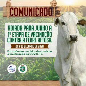 Devido à pandemia da Covid-19, a Agência de Defesa Agropecuária do Estado do Ceará (Adagri) e os órgãos de defesa sanitária animal de todo o Nordeste decidiram adiar o início da primeira etapa de vacinação da campanha da Febre Aftosa para o dia 1º de junho de 2020.