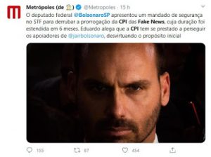 Na semana passada, os irmãos 02 e 03, Carlos e Eduardo Bolsonaro, vociferaram nas redes contra a CPMI das Fake News, que está desvendando o disparo ilegal de notícias falsas contra adversários políticos, hábito adquirido nas eleições de 2018 e que continuam utilizando com maior intensidade e mais aperfeiçoamento.