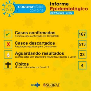Boletim epidemiológico da Secretaria da Saúde de Sobral desta terça-feira (28/04), atualizado às 21h10.
