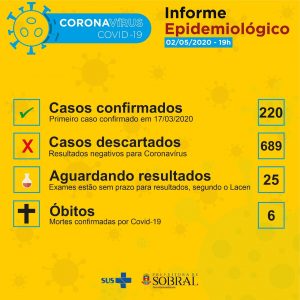 Boletim epidemiológico da Secretaria da Saúde de Sobral deste sábado (02/05), atualizado às 19h.