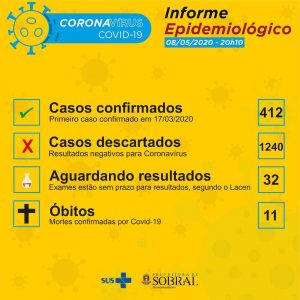 Boletim epidemiológico da Secretaria da Saúde de Sobral desta sexta-feira (08/05), atualizado às 20h10.