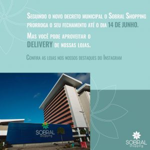 Seguindo o decreto municipal de Sobral, o Sobral Shopping prorrogará a pausa nas suas atividades até o dia 14/06. Estamos ansiosos pra vê-los novamente. Mas, enquanto isso, cuidem-se e #FicaEmCasa! ![]()