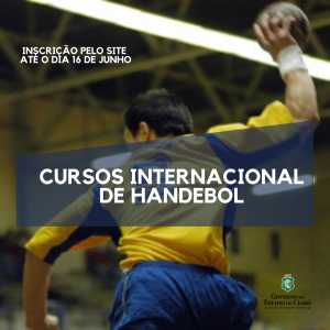 A Secretaria do Esporte e Juventude (Sejuv) abre inscrições para curso internacional de handebol gratuito voltado para toda a comunidade que tenha interesse no Handebol.As aulas serão ministradas pelo técnico da Seleção Brasileira Adulta de Handebol Feminino, o espanhol Jorge Dueñas.