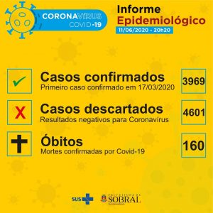 Boletim epidemiológico da Secretaria da Saúde de Sobral desta quinta-feira (11/06), atualizado às 20h20.