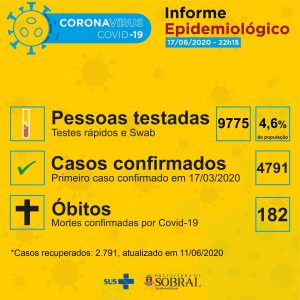 Boletim epidemiológico da Secretaria da Saúde de Sobral desta quarta-feira (17/06), atualizado às 22h15.