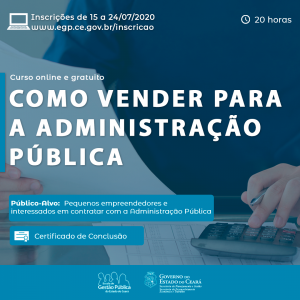 Com o objetivo de aperfeiçoar o processo de contratação pela Administração Pública Estadual, a Secretaria do Desenvolvimento Econômico e Trabalho (Sedet), em parceria com a Secretaria do Planejamento e Gestão (Seplag) e a Escola de Gestão Pública do Estado do Ceará (EGPCE), promove o curso Como Vender para a Administração Pública, na modalidade a distância. O curso é gratuito e voltado aos pequenos empreendedores e demais interessados em conhecer como se dá a contratação com a Administração Pública.