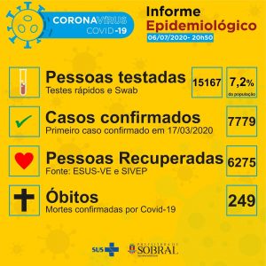 Boletim epidemiológico da Secretaria da Saúde de Sobral desta segunda-feira (06/07), atualizado às 20h50.