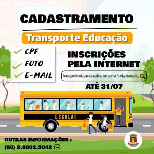 ⚠️ Atenção ⚠️ O período de cadastramento para o Transporte da Educação na Prefeitura de Sobral já começou 🚍 Serão cadastrados alunos da rede pública municipal e estadual de ensino, universitários e servidores da Educação.