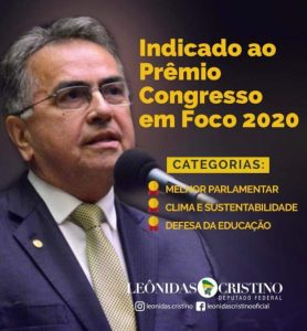 Em mais um ano de mandato, o deputado federal Leônidas Cristino foi indicado ao Prêmio Congresso em Foco, que destaca a atuação parlamentar no Congresso Nacional. Desta vez, o ex-prefeito de Sobral, foi indicado nas categorias de melhor parlamentar (geral), melhor parlamentar na defesa do clima e sustentabilidade e melhor parlamentar na defesa da educação. A partir desta sexta-feira (17), a votação estará aberta no site