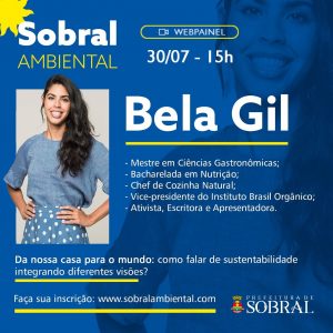 A apresentadora do Multishow, Bela Gil, está confirmada no Webpainel Sobral Ambiental onde falará sobre sustentabilidade e alimentação. Afinal, qual a nossa responsabilidade diante de um mundo cada vez próximo do colapso de abastecimento?