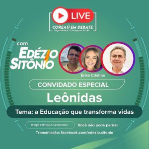 Pré-candidatos e prefeito e vice de Coreaú, Edésio Sitonho e Erika Cristino, estão realizando semanalmente, um bate papo virtual abordando com convidados especiais, os principais temas de interesse coletivo para os coreauenses. Nesta segunda-feira (17), as 19h, o convidado do Coreaú em Debate será o deputado federal, ex-ministro dos Portos e ex-prefeito de Sobral, Leônidas Cristino, que abordará o tema: “A Educação que transforma vidas”. A live terá cerca de 50 minutos de duração e será transmitida no Facebook do Edésio – AQUI (https://bit.ly/2PZRT71)
