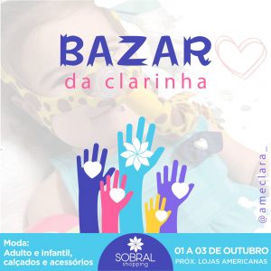 Todos juntos por Clarinha! ❤ Do dia 01 ao dia 03 de outubro, no Sobral Shopping, teremos o Bazar da Clarinha, com todo o valor arrecadado sendo utilizado para ajudar a pagar o tratamento da Clara (@ameclara_)!
